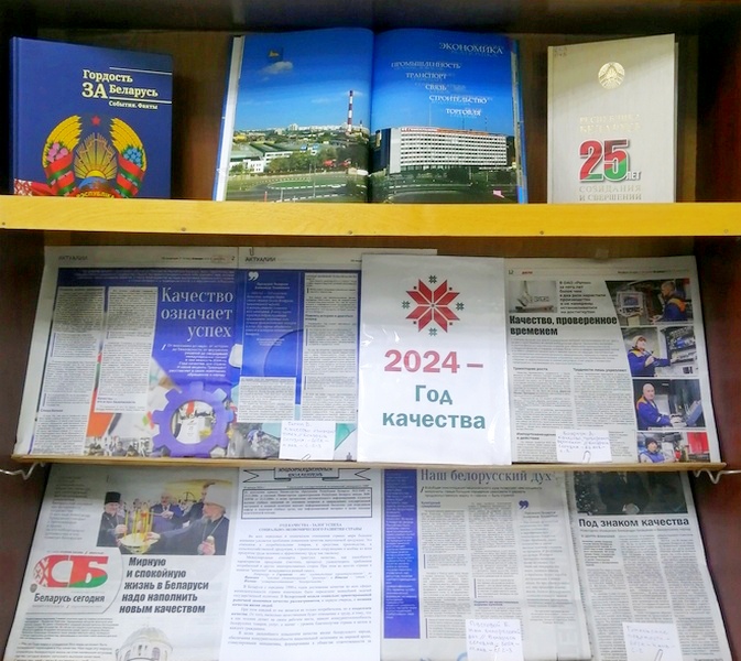 На абонементе обслуживания учебной и научно-медицинской литературой оформлена постоянно действующая выставка «2024 — Год качества». Глава государства Александр Лукашенко подписал Указ № 375 «Об объявлении 2024 года Годом качества».