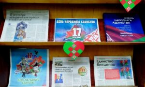 На абонементе обслуживания учебной и научной литературой оформлена книжная выставка «МЫ-едины!», в отделе библиометрии и информационного обеспечения научных исследований — «Мая краiна Беларусь».