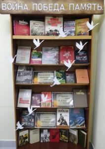 На выставке представлены книги, которые рассказывают о героизме, мужестве и стойкости советских людей в годы ВОВ. Это рассказы об уникальных человеческих судьбах, неизвестных или малоизвестных военных событиях и подвигах, которые совершались во имя Победы. Главный смысл произведений – священная память о тех, кто завоевал право на бессмертие самой дорогой ценой – ценой жизни.