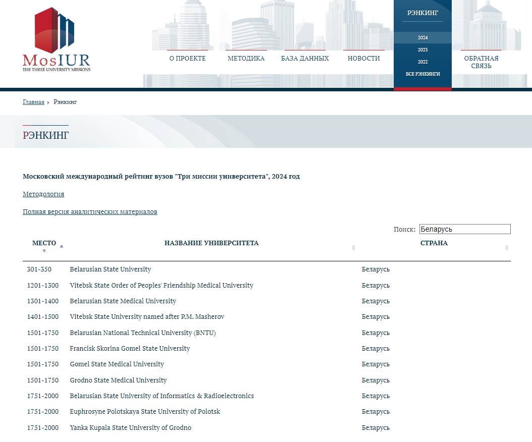 Московский международный рейтинг вузов – принципиально новый академический рейтинг, который впервые оценивает все три ключевые миссии университета: образование, науку и взаимодействие с обществом. Создание рейтинга было инициировано Российским союзом ректоров в сентябре 2016 года. Рейтинг обновляется один раз в год. Последнее обновление – август 2024 года.