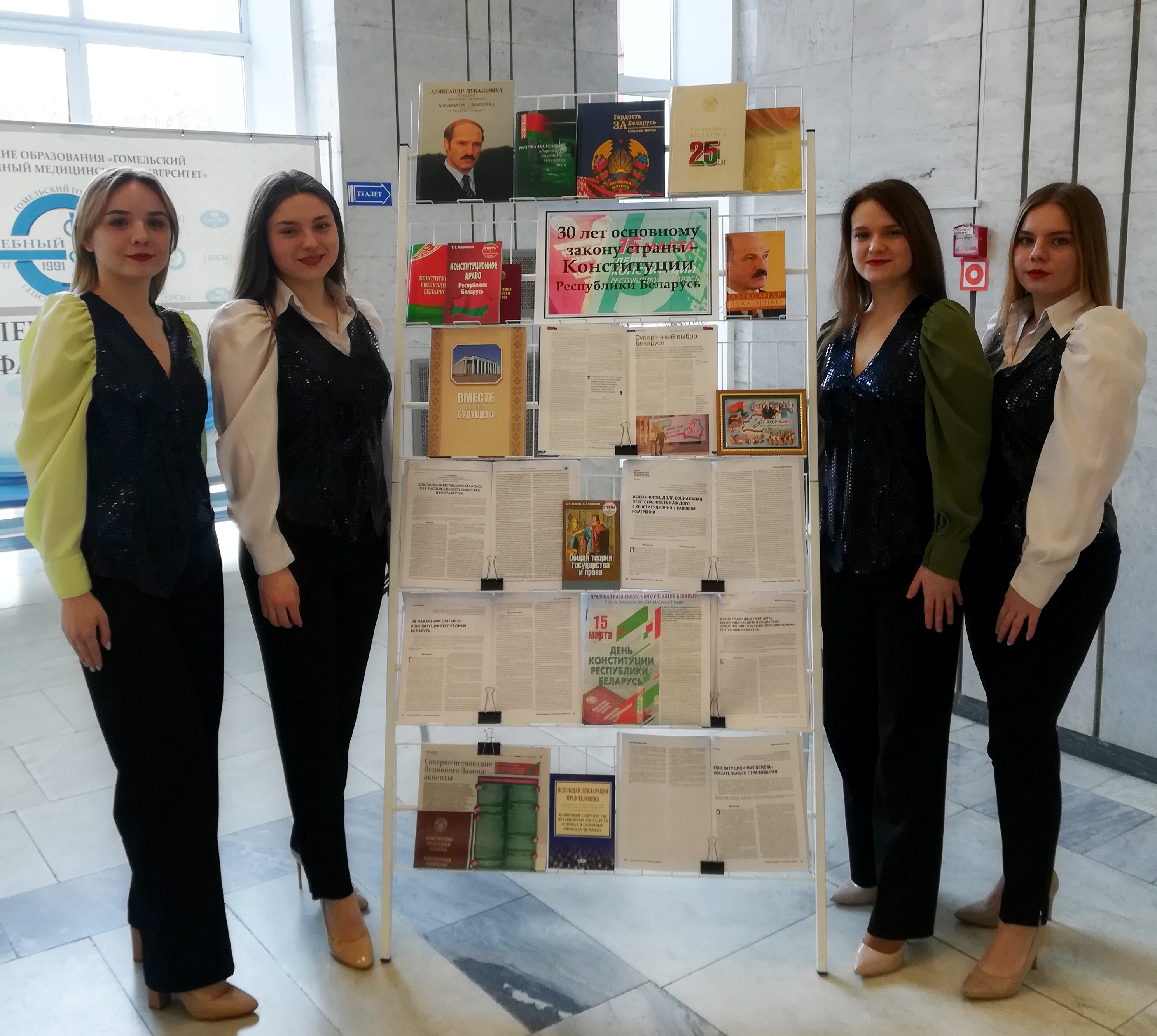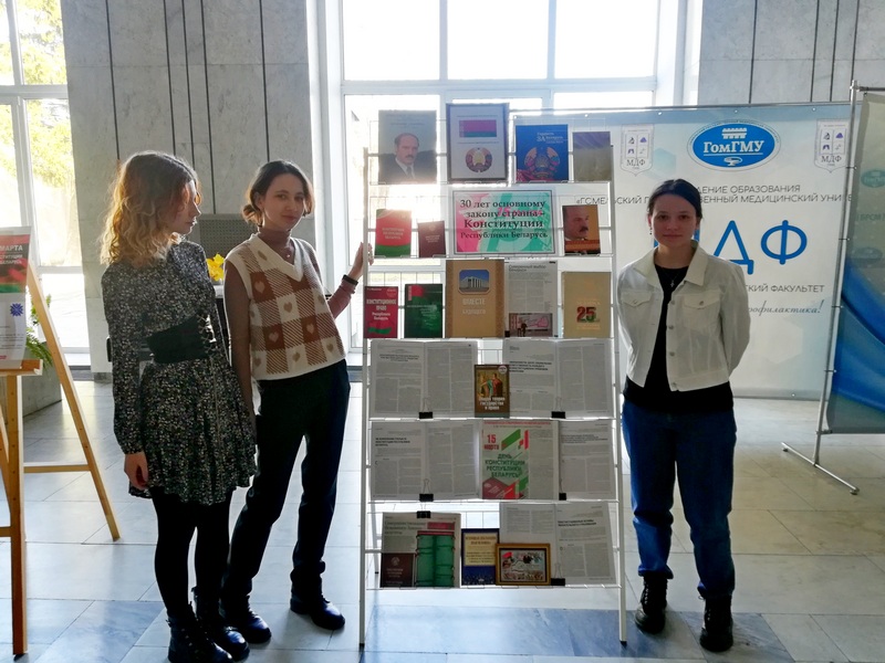 14-15 марта 2024 года в рамках гражданско-патриотических мероприятий университета, приуроченных этой дате, в холле учебного корпуса №1 научной медицинской библиотекой организована выставка литературы «30 лет Основному Закону страны – Конституции Республики Беларусь». На выставке представлены книжные новинки и материалы периодических изданий, посвященные этапам становления белорусской государственности, истории развития республики, как унитарного демократического социального правового государства.