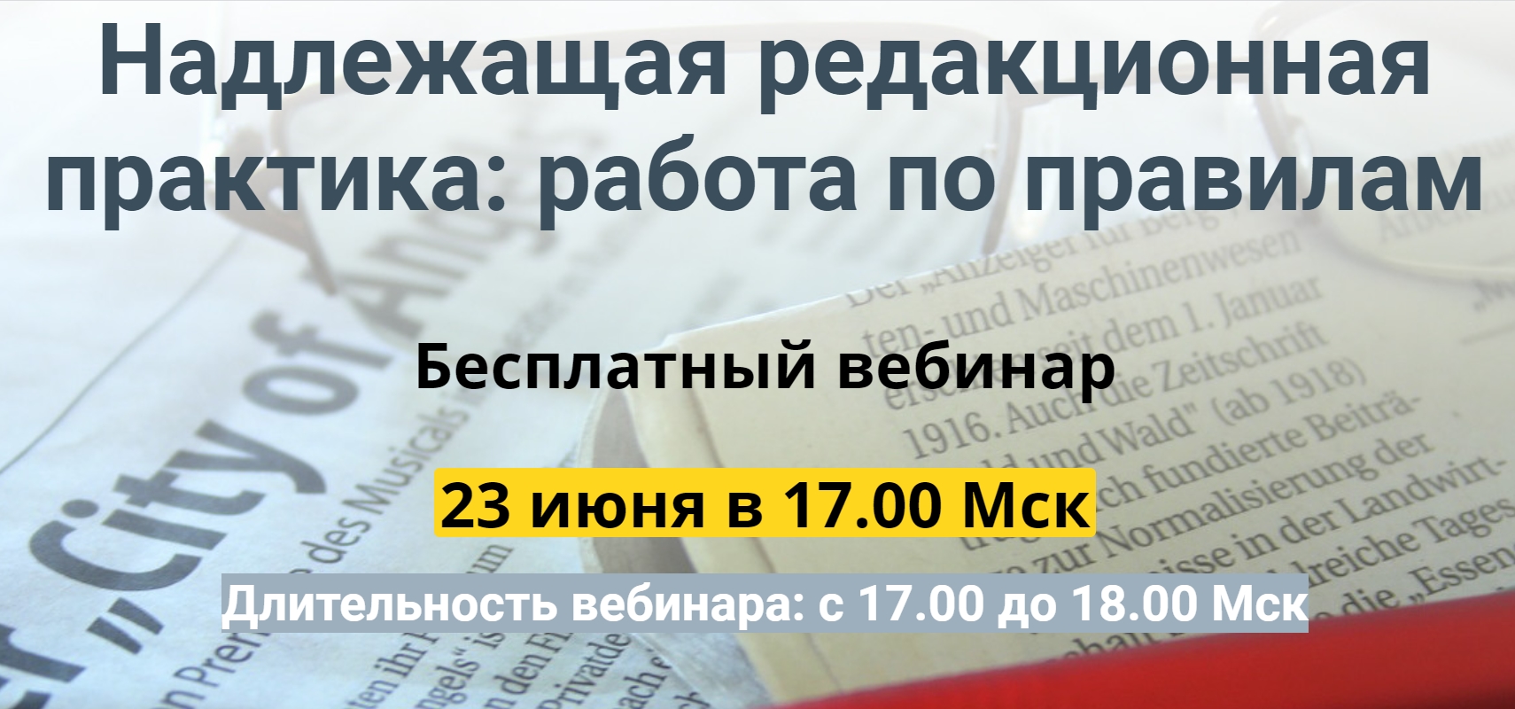 23 июня с 17.00 до 18.00 пройдет БЕСПЛАТНЫЙ вебинар «Надлежащая редакционная практика: работа по правилам».