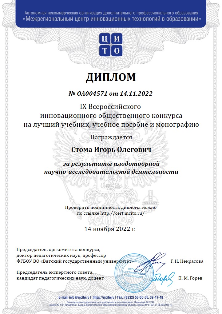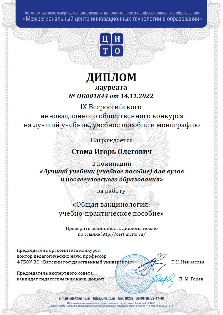 Результаты IX Всероссийского инновационного общественного конкурса на лучший учебник, учебное пособие и монографию (с индексацией в РИНЦ)