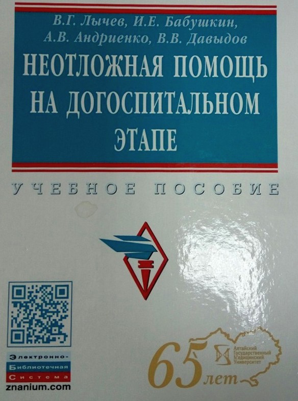 Неотложная помощь на догоспитальном этапе: учеб. пособие / В. Г. Лычев [и др.]; под ред. проф. В. Г. Лычева. – Москва: ИНФРА-М, 2019 – 160 с. – (Высшее образование: Специалитет).